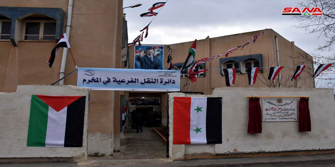 افتتحت وزارة النقل اليوم دائرة النقل الفرعية بمنطقة المخرم في ريف حمص الشرقي بهدف تقديم الخدمات للمواطنين وتبسيط كل الإجراءات لهم من تجديد رخص وتسجيل مركبات ونقل قيد ومنح رخص وغيرها من الخدمات.