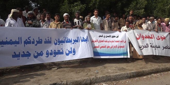 ويواصل النظام السعودي عدوانه على اليمن منذ آذار عام 2015 مرتكباً جرائم بحق الشعب اليمني ذهب ضحيتها عشرات الآلاف بين قتيل ومصاب ومستهدفاً المنشآت الاقتصادية والبنى التحتية الحيوية بالتزامن مع فرض حصار خانق على الموانئ والمطارات والحدود اليمنية ما تسبب بمعاناة كبيرة للسكان إضافة إلى انتشار الأمراض والأوبئة مع نقص الأدوية في البلاد.