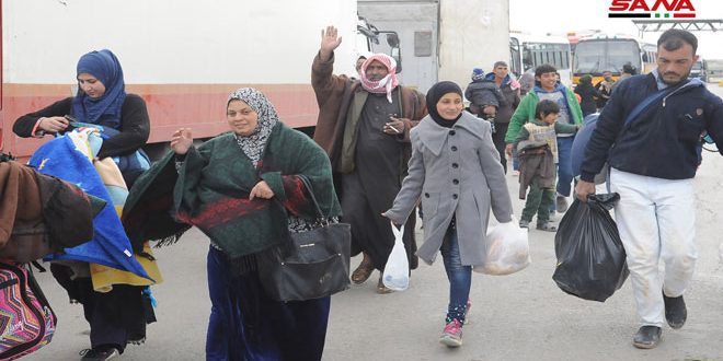 درعا-سانا دفعة جديدة من المواطنين المهجرين بفعل الإرهاب عادت اليوم إلى الوطن قادمة من مخيم …