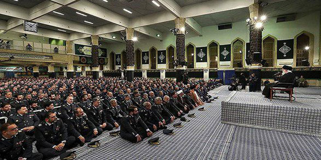 وأوضح الخامنئي لدى استقباله اليوم قادة القوة الجوية وأعضاء الدفاع الجوي في الجيش الإيراني أن الولايات المتحدة “تجسد الشر” وأن الشعار الذي يردده الإيرانيون “الموت لأميركا” لا يعني الشعب الاميركي بل ساسة الادارة الاميركية المستمرة في خبثها.