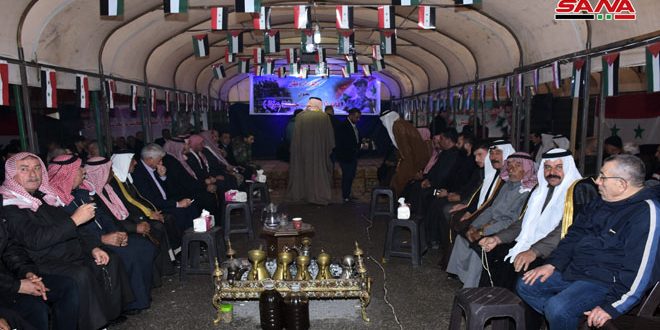الشيخ قدور عبد الرزاق الحسين من قبيلة البكارة قال: “من هذا المكان الذي تم تطهيره من رجس الإرهاب بفضل سواعد رجال الجيش العربي السوري جئنا لنقول للعالم كله إننا صف واحد وبكل أطياف أبناء سورية نحن مع جيشنا وقيادتنا”.