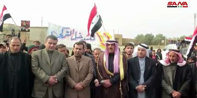 وأكد الأهالي عزمهم على مقاومة الاحتلال الأميركي وجميع القوات الأجنبية الموجودة في سورية بطريقة غير شرعية والعمل على دحرهم منها بكل السبل المتاحة بالتعاون مع الجيش العربي السوري.