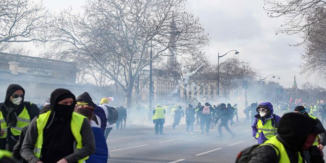 للأسبوع الثالث عشر على التوالي شهدت باريس ومدن فرنسية أخرى اليوم احتجاجات شعبية واسعة ضد سياسات الرئيس الفرنسي إيمانويل ماكرون الاقتصادية مطالبة باستقالته بينما واجهتها الشرطة الفرنسية باستخدام أساليب القمع المختلفة في محاولة لاحتواء ووقف اتساعها وامتدادها ما أدى إلى إصابات في صفوف المتظاهرين.