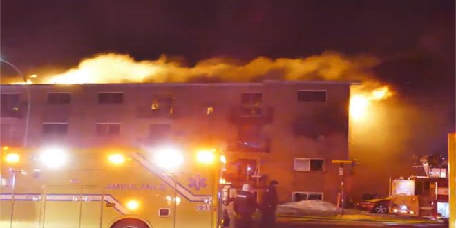 وذكرت شبكة “سي بي سي” الإخبارية الكندية اليوم أن الحريق اندلع في قبو المبنى وزحفت النيران لاحقا إلى الطابقين الأول والثاني وأنه تم العثور على ثلاثة أشخاص مغمى عليهم ونقلوا إلى المستشفى حيث توفوا لاحقا متأثرين بإصاباتهم جراء الحريق.