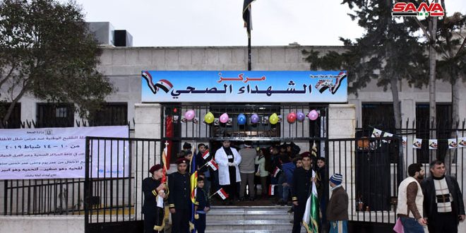 افتتح بحي السكري في حلب مركز الشهداء الصحي الذي يقدم الخدمات الطبية العلاجية المجانية لأهالي المنطقة التي عانت جراء الإرهاب.