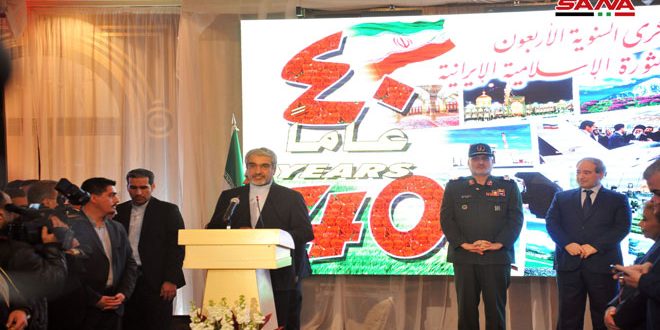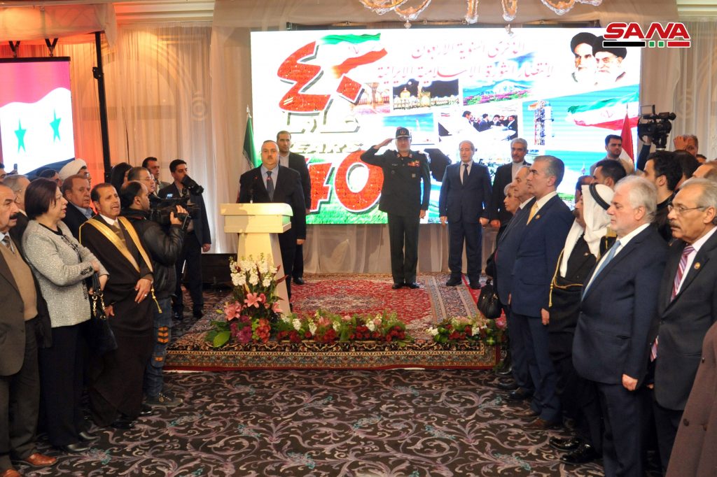 أقامت السفارة الإيرانية في دمشق اليوم حفل استقبال بمناسبة العيد الوطني والذكرى الـ 40 لانتصار الثورة الإسلامية الإيرانية وذلك في فندق داما روز بدمشق.