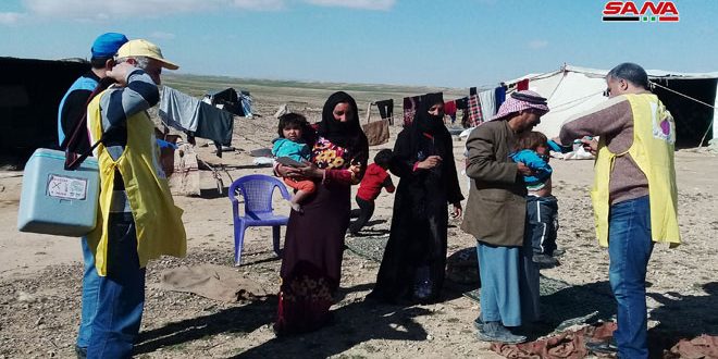 وصلت الفرق الجوالة والكادر الطبي المكلف بحملة اللقاح الوطنية ضد شلل الأطفال دون سن الخمس سنوات إلى كل التجمعات السكانية في أرجاء بادية تدمر.