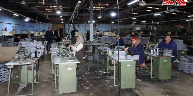 وفي معمل الأحذية في مصياف عرض شريف أحمد الحسن مدير المعمل أمام وزير الصناعة واقع الطاقة الإنتاجية للعمل التي تصل يوميا إلى 500 زوج من الأحذية العسكرية والمدنية بخط إنتاجي واحد والصعوبات التي تواجه العمل من نقص العمالة والحاجة إلى توريد المزيد من الآلات كتجهيزات القص والكبس والتسمير.