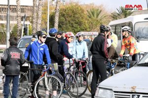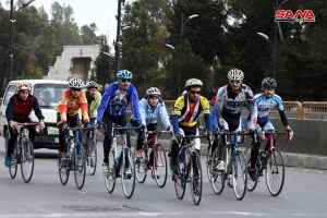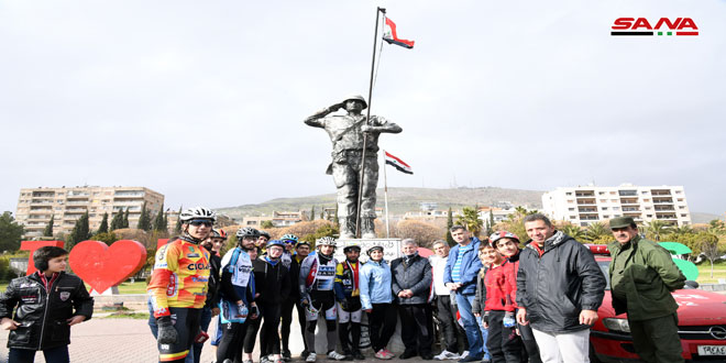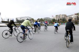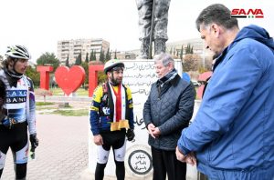 بوصوله إلى ساحة الأمويين بدمشق اليوم أنهى اللاعب علاء الراعي “رحلة النصر” التي بدأها على دراجته الهوائية منذ ثلاثة أيام قادما من طرطوس إلى اللاذقية ثم حماة وحمص مرورا بريف دمشق وصولا إلى دمشق.