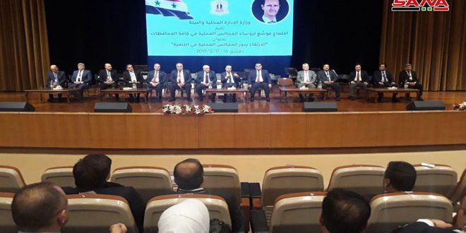 خصصت الجلسة المسائية للاجتماع الموسع لرؤساء المجالس المحلية الذي عقد اليوم في قصر المؤتمرات بدمشق تحت عنوان “الارتقاء بدور المجالس المحلية في التنمية” للقاء مفتوح بين المشاركين ووزير الإدارة المحلية والبيئة المهندس حسين مخلوف والمحافظين للإجابة عن جميع تساؤلات المشاركين في مختلف المجالات .