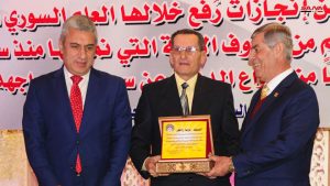 وشهد الحفل تكريم نخبة من كوادر الرياضة السورية التي تألقت بإنجازاتها في البطولات الدولية إضافة إلى تكريم القيادات الرياضية التي تعاقبت على منظمة الاتحاد الرياضي العام ووسائل الإعلام المحلية من بينها الوكالة العربية السورية للأنباء سانا والفائزين في المسابقة الثقافية المركزية التي أقامها مكتب الإعلام المركزي في الاتحاد الرياضي مؤخراً.