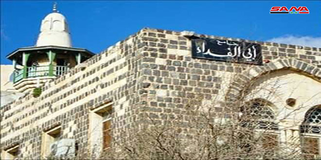 الباحث في التراث الحموي “مجد حجازي” بين لنشرة سانا سياحة ومجتمع أن “أبي الفداء” بدأ ببناء الجامع سنة 727 هجري 327 ميلادي بحسب نص ورد على إحدى دعائم حرم الجامع ضمن شريط رخامي يتضمن كتابة محفورة بخط نسخي جميل وتتوسطه باحة “صحن” متسعة محاطة برواق من ثلاث جهات وهو محمول على أعمدة دائرية وبداخل الباحة وعلى يمين المدخل الشمالي يقع ضريح الملك أبي الفداء.