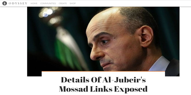 موقع أوديسي الأمريكي كشف أن وزير خارجية النظام السعودي السابق عادل الجبير الذي يشغل حالياً منصب وزير الشؤون الخارجية عميل للموساد الإسرائيلي وأن علاقته بالموساد تعود إلى تسعينيات القرن الماضي وتسبق انضمامه إلى السلك الدبلوماسي السعودي وترقيه في عدد من المناصب وصولا إلى مرتبة وزير.