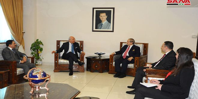 وتم خلال اللقاء مناقشة قضايا تتعلق بالأوضاع القائمة على الأرض والجهود المبذولة على مختلف المستويات للتوصل إلى إنهاء الأزمة وفق قرارات مجلس الأمن ذات الصلة التي تؤكد على سيادة واستقلال ووحدة الجمهورية العربية السورية أرضا وشعبا بما في ذلك القرارات المتعلقة بمكافحة الإرهاب والدور الذي يستطيع أن يقوم به المبعوث الخاص لتسهيل الحوار بين السوريين بحيث تكون العملية السياسية بقيادة وملكية سورية.