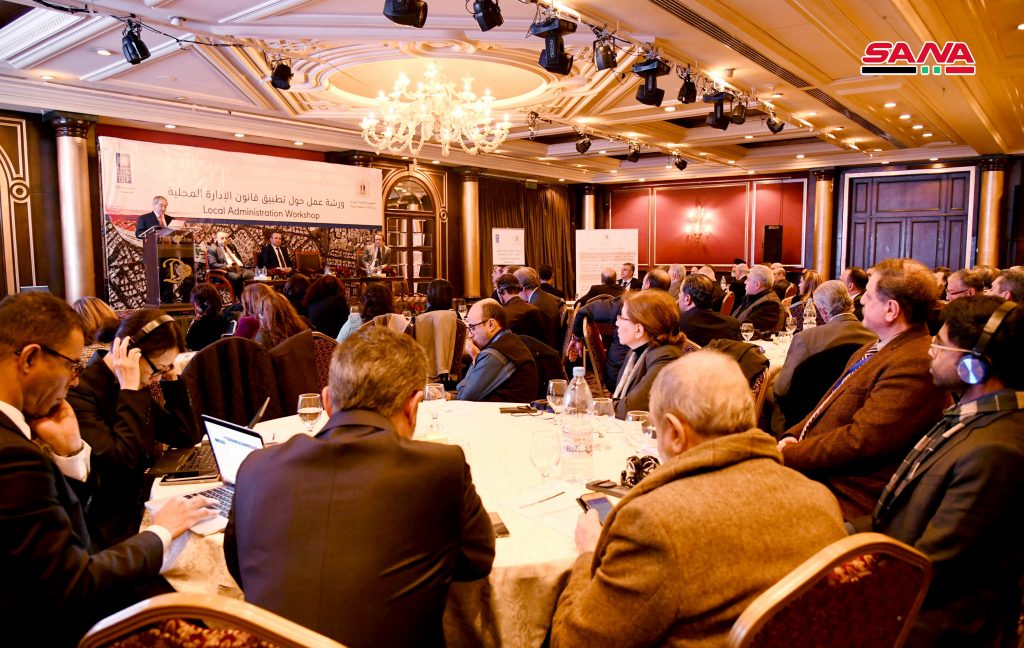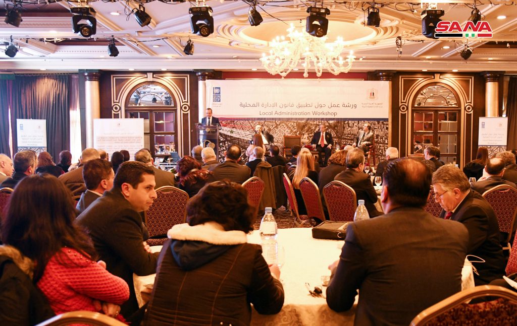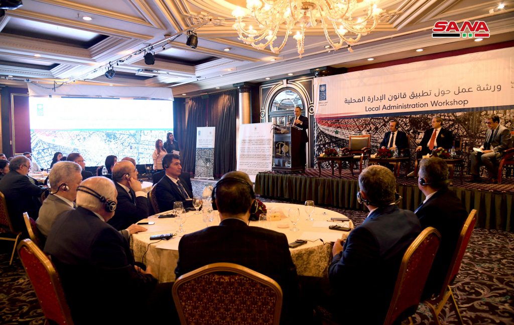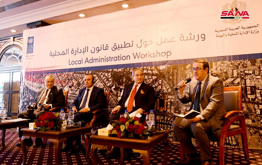 أطلقت وزارة الإدارة المحلية والبيئة بالتعاون مع برنامج الأمم المتحدة الإنمائي ورشة العمل الوطنية حول تطبيق قانون الإدارة المحلية بمشاركة عدد من المحافظين ورؤساء المجالس المحلية وذلك في فندق داماروز بدمشق.