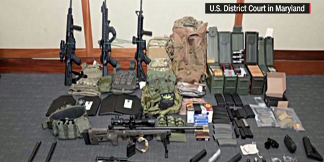 ونقل موقع شبكة CNN الالكتروني عن محققين ووثائق قضائية: إن الشرطة عثرت على أسلحة وذخائر في منزل الضابط كريستوفر بول هاسون في ضاحية سيلفر سبيرنغ بولاية ميريلاند وأن الأخير حدد قائمة أهداف تتضمن اغتيال “سياسيين ديمقراطيين بارزين”.
