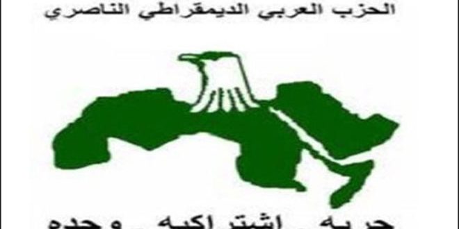 جدد الحزب العربي الديمقراطي الناصري تضامنه مع سورية في مواجهتها للإرهاب والمؤامرة الصهيوأمريكية مؤكدا أن انتصارات سورية في ميادين القتال عملت على صد وافشال المخطط التقسيمي للمنطقة.