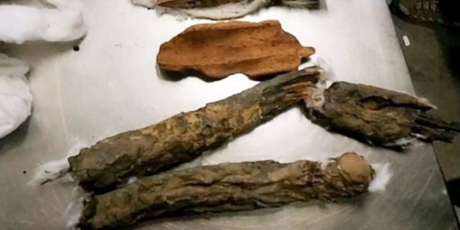 ونقل موقع وزارة الآثار المصرية عن رئيس الإدارة المركزية للمنافذ والوحدات الأثرية بالموانئ المصرية حمدي همام قوله: إن “سلطات الجمارك اشتبهت في وجود جسم غريب داخل أحد الطرود المشحونة إلى بلجيكا وقامت اللجنة الأثرية المختصة بفحص الطرود بواسطة جهاز الأشعة واكتشفت وجود أجزاء من هياكل عظمية مخبأة داخله”.
