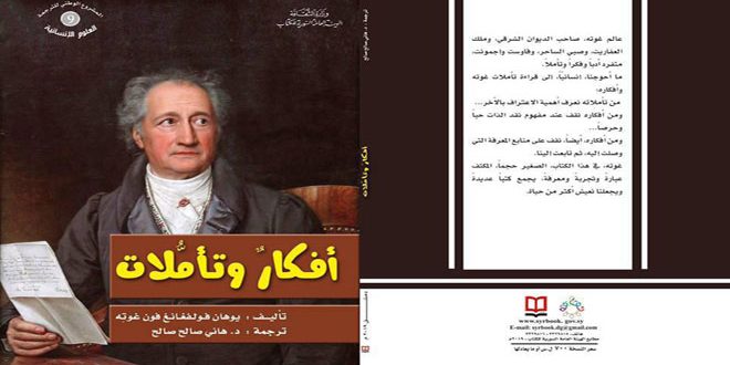 يقدم كتاب “أفكار وتأملات” شذرات من فكر الأديب الألماني الأشهر يوهان فولفغانغ فون غوته عارضا خلالها رؤاه فلسفة النفس والقوى الذاتية وعما يعتري الإنسان من تحولات عاطفية في حياته.