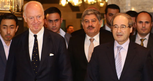 وكان دي ميستورا أكد في تصريح للصحفيين عقب لقائه السيد الرئيس بشار الأسد خلال زيارته السابقة لدمشق في أيلول الماضي “أن التهديد الإرهابي أصبح مصدر قلق وخوف عالمي يتشاركه الجميع وأن محاربة الإرهاب أولوية بالنسبة لنا”.