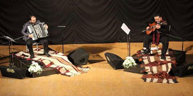 بتناسق لحني متفرد غازلت موسيقا الأوكورديون العازف وسام الشاعر أوتار غيتار الموسيقي طارق صالحية ضمن حفل استضافته خشبة دار الثقافة بحمص وحملت عنوان شرق غرب.
