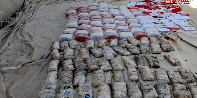 وأفاد مصدر في الجهات المختصة بتصريح لمراسل سانا بأنه “نتيجة للمتابعة الدقيقة والتحريات المستمرة حول المتاجرين والمروجين للمواد المخدرة تم ضبط سيارة براد تحمل لوحات إماراتية في ريف دمشق كانت متجهة إلى المنطقة الجنوبية من البلاد وبتفتيشها بشكل دقيق تم العثور على مخابئ سرية في أسفل السيارة تحوي كميات كبيرة من حبوب الكبتاغون والحشيش”.