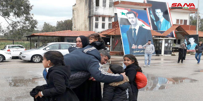 عادت اليوم دفعات جديدة من المهجرين السوريين إلى قراهم وبلداتهم التي فروا منها في أوقات سابقة هرباً من جرائم الإرهابيين عبر معبري الدبوسية وجديدة يابوس الحدوديين مع لبنان وذلك في إطار الجهود المشتركة التي تبذلها الحكومة السورية بالتعاون مع الجانب اللبناني لإعادة جميع المهجرين إلى أرض الوطن.