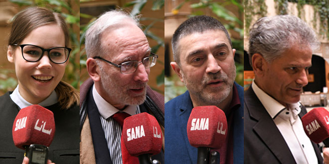 عبر عدد من أعضاء وفد المفكرين الأوروبيين الذي يزور سورية حالياً عن دعمهم وتضامنهم مع سورية حكومة وشعباً منوهين بنضال الشعب السوري في مواجهة الإرهاب وكل أشكال التدخل الخارجي والحفاظ على وطنه وسيادته.