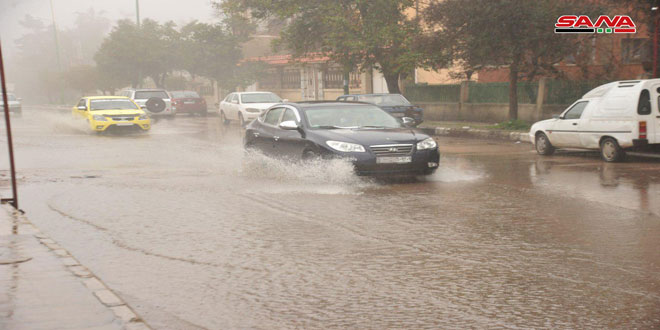 سيول وتجمعات مائية جراء الهطولات المطرية الغزيرة في السويداء