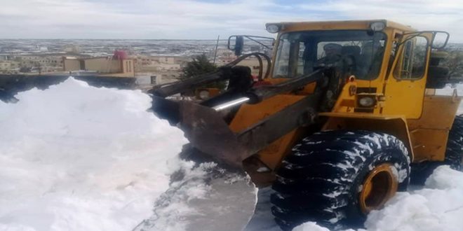 ولفت إلى أن آليات مديريات الخدمات الفنية والزراعة وفرع مشاريع استصلاح الأراضي يفتحون الطرقات المغلقة وفق محاور عملهم مبيناً أن التعامل مع الثلوج سهل كونه لا يوجد صقيع.