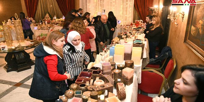 ازدانت قاعة الشاليمار بفندق أمية بدمشق بمجموعة من التصاميم الشمعية المميزة ضمن معرض خاص بمختلف أشكال الشموع بعنوان “سورية شمعة مضوية”.