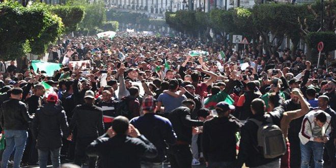 وخرج آلاف الجزائريين في العاصمة وعدد من مدن الجزائر أمس في مسيرات تطالب بـ “التغيير” وإجراء إصلاحات عميقة في تسيير شؤون البلاد واتسمت المسيرات بالطابع السلمي باستثناء مناوشات في بعض شوارع العاصمة الجزائرية دفعت قوات الأمن إلى استعمال الغاز المسيل للدموع لتفريق المتظاهرين.