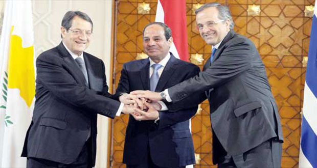 وكان الرئيسان المصري والقبرصي ورئيس وزراء اليونان أكدوا في مؤتمر صحفي عقب اجتماعهم في القاهرة ضرورة مواجهة الارهاب والتطرف الذي تتعرض له المنطقة بمنتهى الحزم والتعاون في المجال الامني مشددين على اهمية التعاون لدعم الاستقرار في شرق المتوسط وتحقيق الاستقرار والسلام لشعوب المنطقة ومواجهة التحديات الاقليمية وخاصة الارهاب أينما وجد سواء في سورية أو العراق أو ليبيا أو غيرها.