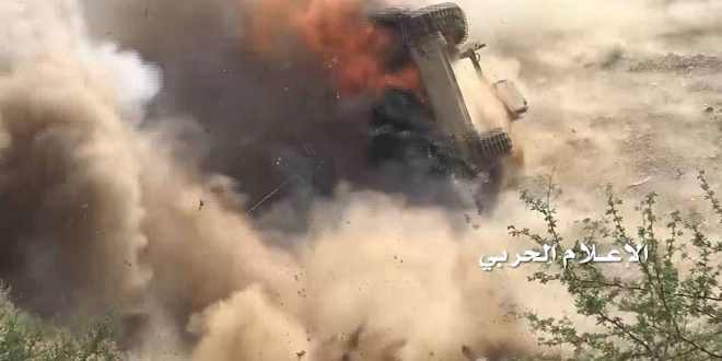 وأفاد مصدر عسكري لموقع المسيرة نت بأن الجيش واللجان تمكنوا من تدمير آلية عسكرية محملة بالمرتزقة في موقع الحماد بنجران من خلال تفجير عبوة ناسفة ما أدى إلى مقتل من فيها.