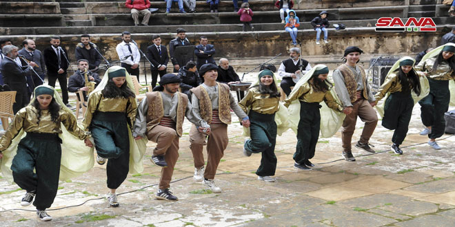 وتضمن النشاط الذي أقيم في المسرح الأثري أغاني متنوعة ومقطوعات موسيقية من التراث الحوراني والوطني لفرقة التسامح والعطاء التابعة لدائرة العلاقات المسكونية والتنمية في درعا فيما قدم أعضاء فرقة سنابل حوران للفنون الشعبية عدة عروض من فلكلور حوران.