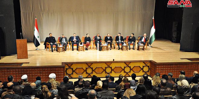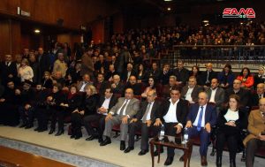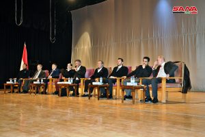 حضر الندوة محافظ طرطوس صفوان أبو سعدى وامين فرع طرطوس للحزب الدكتور محمد حسين.