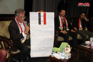 وخلال لقاء الوفد في دار الأسد للثقافة في اللاذقية مع النخب المثقفة أكد رئيس الوفد الرحالة عدنان عزام أن صمود سورية وانتصارها على الإرهاب جعلها نموذجا يحتذى به على مستوى العالم بالشجاعة ونكران الذات وبالتضحيات التي قدمتها لتبقى حرة.
