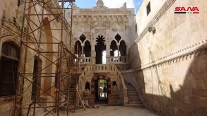 بخطى متسارعة تسير أعمال ترميم وتأهيل دار الإفتاء الأثرية “الزاوية الصيادية” بحلب بعد أن طالتها يد الإرهاب بالدمار والخراب لتعود كما كانت بطرازها العمراني الفريد الذي مزج بين العمارة العربية الإسلامية والأوروبية وتتناغم مع موقعها التاريخي والأثري المطل على قلعة حلب من الجهة الشرقية.