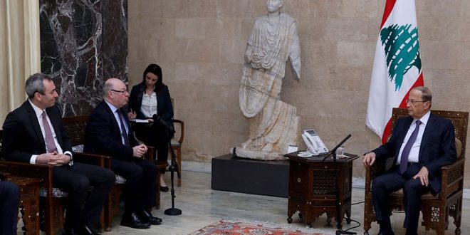 وقال بيان صادر عن الرئاسة اللبنانية إن عون دعا خلال الاجتماع إلى دعم لبنان في سعيه لإعادة المهجرين السوريين إلى مناطقهم وتقديم المساعدات لهم بعد عودتهم.