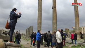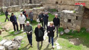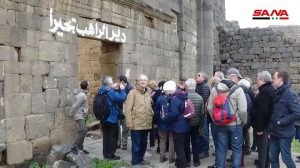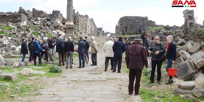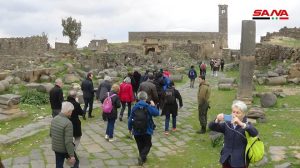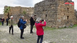 استقبلت مدينة بصرى الأثرية في محافظة درعا اليوم مجموعة سياحية أجنبية تضم جنسيات من فرنسا وكندا وسويسرا في زيارة لقلعتها ومسرحها وأوابدها الأثرية.