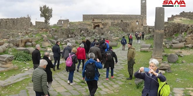 مجموعة سياحية من فرنسا وكندا وسويسرا تزور مدينة بصرى الأثرية