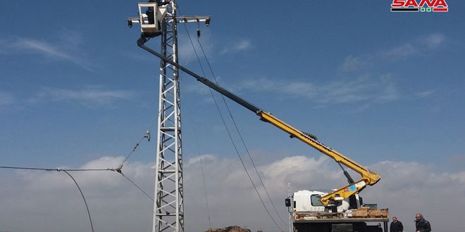 تواصل ورشات الصيانة والاصلاح التابعة للشركة العامة لكهرباء القنيطرة العمل لتأهيل محور القنيطرة-القحطانية بريف المحافظة الغربي الذي يخدم أكثر من عشرة آلاف نسمة بالتيار الكهربائي.