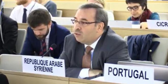 وقال: تتطلع سورية لأن تولي المفوض السامي المزيد من الاهتمام لانتهاكات الحقوق الأساسية والممارسات التعسفية والتمييزية التي تطال أبناء الجولان السوري المحتل نتيجة السياسات الاستيطانية ومحاولات ترسيخ الاحتلال الإسرائيلي للجولان.