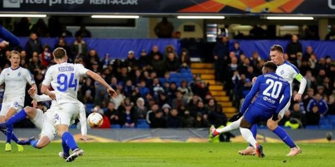 تغلب تشيلسي الإنكليزي بسهولة على ضيفه دينامو كييف الأوكراني بثلاثة أهداف دون مقابل على ملعب ستامفورد بريدج في ذهاب الدور ثمن النهائي من مسابقة الدوري الأوروبي بكرة القدم.