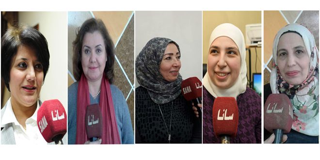 سانا التقت نساء وصلن إلى مواقع صنع القرار وسجلن بصمتهن في ميادين مختلفة ومن مجلس الشعب الذي يضم 32 امرأة تحت قبته أشارت عضو مجلس الشعب عن محافظة إدلب فاطمة خميس إلى أن المرأة السورية هي الأم والعاملة والفلاحة والطبيبة والقاضية التي ناضلت على كل الصعد وسجلت تضحيات وبطولات ولا سيما خلال سنوات الحرب.