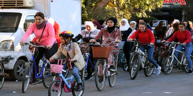 نظمت مجموعة من السيدات فعالية “يلا عالبسكليت” في مدينة دمشق إيماناً منهن بأهمية تعزيز ثقة المرأة بنفسها في مواجهة التحديات اليومية حتى البسيطة منها، وتشجيعها على ركوب البسكليت وممارسة أي هوايات ترغبها وذلك بمناسبة يوم المرأة العالمي.