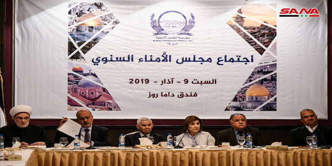 وختم المجلس بيانه بتوجيه التحية إلى سورية وجيشها البطل وقيادتها الحكيمة ولكل من يقدم جهدا لنصرة القضية الفلسطينية ولا سيما مدينة القدس التي هي الوطن الروحي لمئات الملايين من المؤمنين في انحاء العالم مؤكدا الاستمرار بالنضال حتى تحقيق النصر على أعداء الأمة.