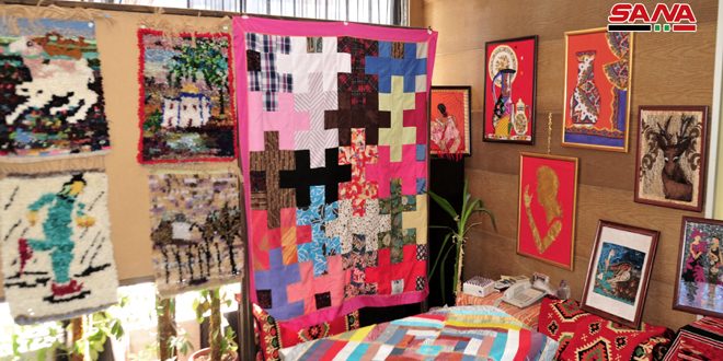 من جانبها أوضحت كارميلندا رسلان المشاركة بإعادة تدوير الأقمشة أنها تقوم بعملها بأسلوب جديد لتحويل القماش إلى لوحات فنية مستخدمة الابرة والخيط وصبغ اللوحات بألوان الفرح معتبرة المعرض نتاج عمل متواصل وجهد للوصول إلى شكل وأسلوب جديد للأعمال اليدوية.