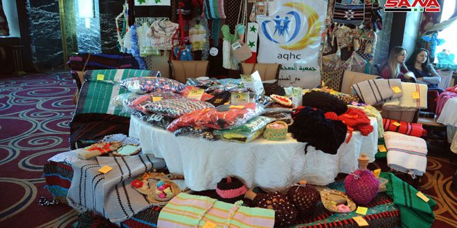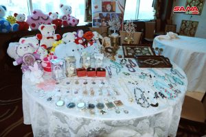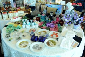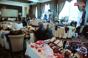 وتضمن البازار الذي أقيم بالتعاون مع صندوق الأمم المتحدة للسكان في فندق قصر القيصر بدمشق مجموعة من الأعمال اليدوية النسيجية والاكسسوارات والمواد الغذائية من إنتاج السيدات اللواتي استفدن من برامج ومشاريع الجمعيات الأهلية المتعلقة بتمكين المرأة ودعمها اقتصاديا.