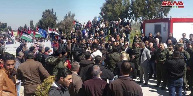 وأكد عدد من المشاركين خلال الوقفة التي أقيمت عند معبر مدينة القنيطرة في تصريح لـ سانا إصرار أبناء الجولان والقنيطرة على مواصلة النضال حتى تحرير كامل تراب الجولان المحتل ورفع العلم العربي السوري فوق ثراه الطاهر.